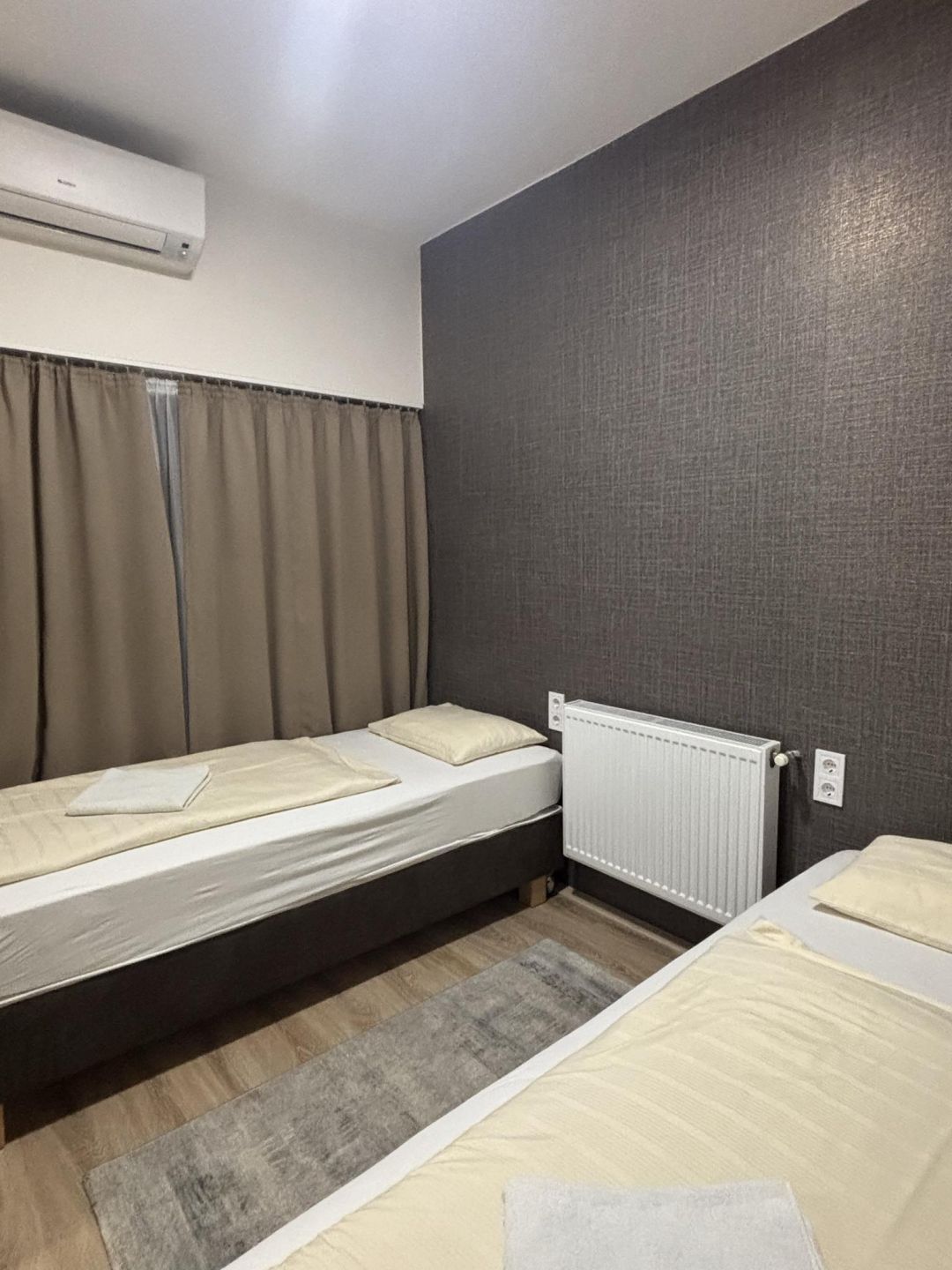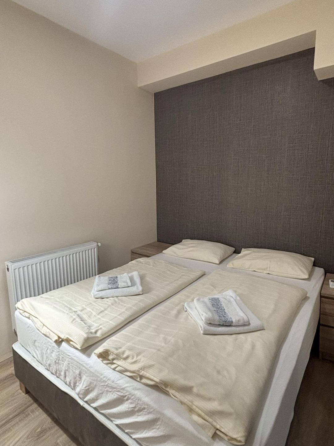 Az apartman háló részében 4 db 90x200-as ágy található, a nappali részben pótággyá alakítható ülőgarnítúra. 4 fő részére biztosít kényelmes tartózkodást.